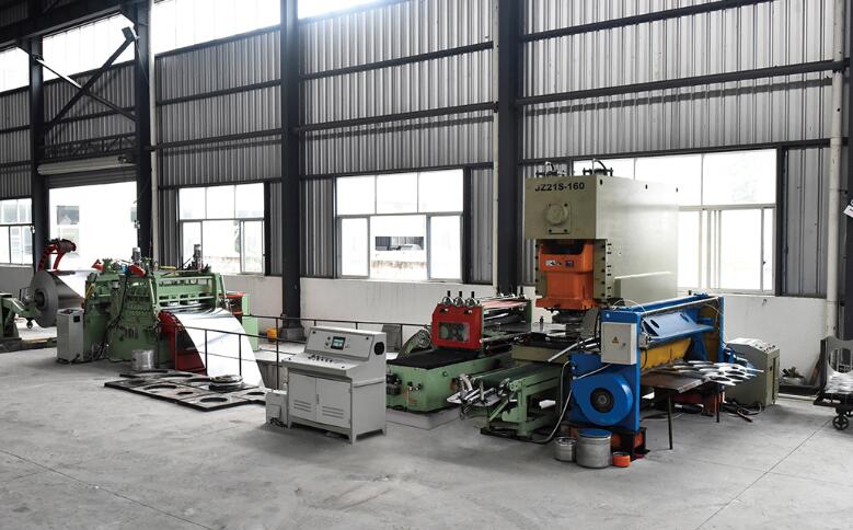 本設(shè)備的工作流程:本設(shè)備是將鋼卷板通過整平后、定尺沖壓落料、橫剪廢料的方式、把鋼板加工成客戶需要尺寸的專用自動剪切設(shè)備。該生產(chǎn)線的主要設(shè)備由液壓上料小車、開卷機(jī)、接料鏟頭、整平主機(jī)、渡橋、NC偏擺定尺送料機(jī)、沖壓設(shè)備、圓片輸送帶等機(jī)構(gòu)構(gòu)成。