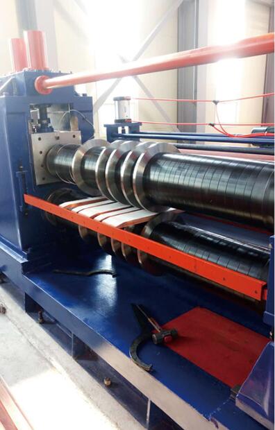 本設(shè)備的工作流程:本設(shè)備是將鋼板(各種金屬材料卷)通過(guò)高速精密縱剪加工成需要寬度的專(zhuān)用剪切設(shè)備。本設(shè)備的主要工作主機(jī)由開(kāi)卷機(jī)、精密圓盤(pán)式刀座、張力產(chǎn)生站、收卷機(jī)等四個(gè)主要機(jī)構(gòu)構(gòu)成,中間輔以收紙、運(yùn)料、夾送、板頭剪床、緩沖、引導(dǎo)、覆膜、收卷廢邊、分卷剪床、出料等裝置。